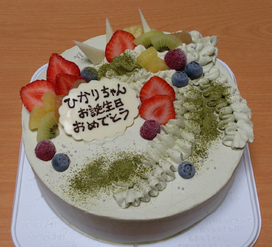 こちらもフルーツショートのバースデーケーキなんですが、抹茶好きの子に!!