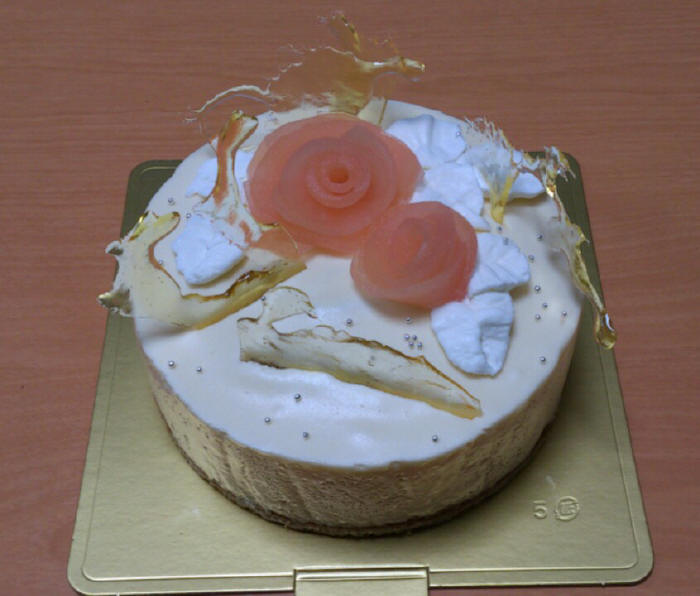 一番下にはプレーンのビスキュイを敷いて、中には甘く煮たリンゴが入ってます。
