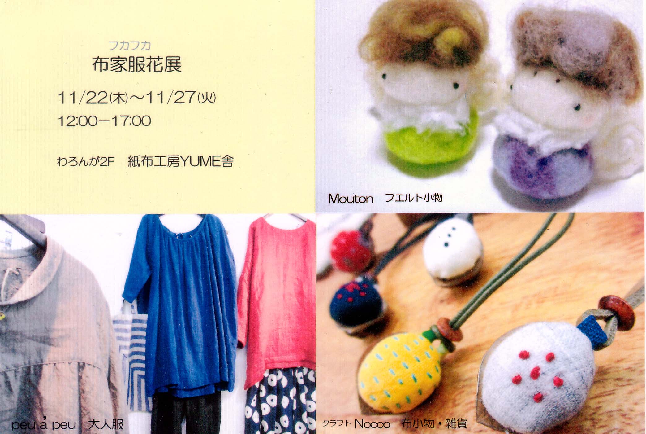 手の温もりから生まれる、作家達のフカフカな想いがいっぱい詰まった作品展です。