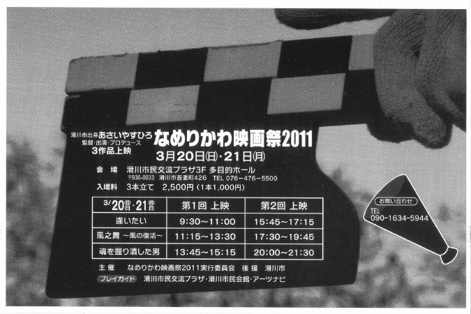 映画は1日2回上映 … 「逢いたい」「風ノ舞~風の復活~」「魂を握り潰した男」