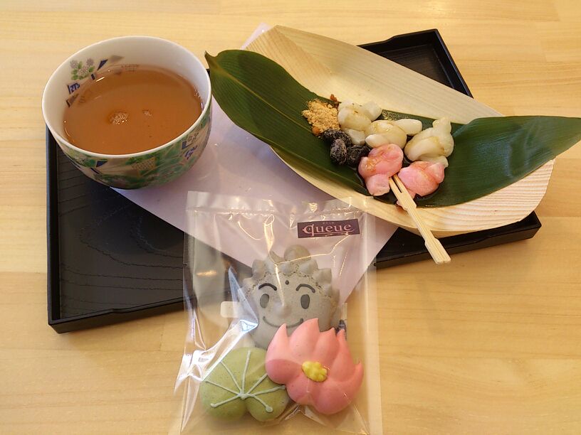 店内では、写真のご縁を招く結び餅の他にもお菓子やドリンクがありますよ(*´ω`*)人