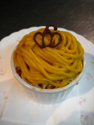 パイと、更にかぼちゃクリームがうにゅーっと乗ってますvv