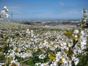 今日はとってもいいお天気で、青い空と白い梨畑の景色が素晴らしかった。